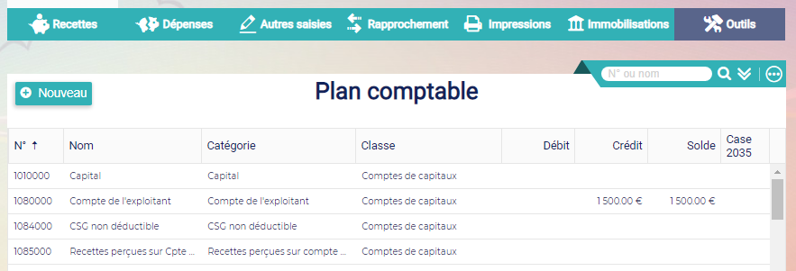 Pour modifier le numéro d’un compte, rendez-vous dans le Plan comptable qui se trouve dans le menu Outils. Sélectionnez ensuite le compte et faites Modifier.