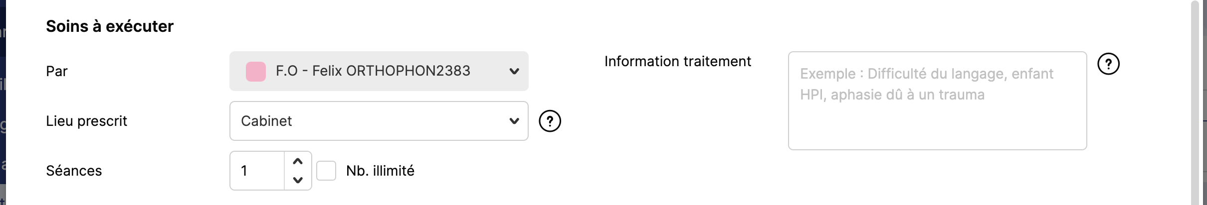 - « Par » : indiquez ici le professionnel de santé qui va exécuter les soins.